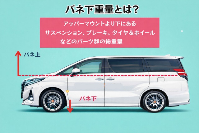 クルマの重量には「バネ上」と「バネ下」があります。バネ下重量(ホイール・タイヤ・ブレーキなどサスペンションより下側の質量) は、実は走行性能に大きな影響を与えます。