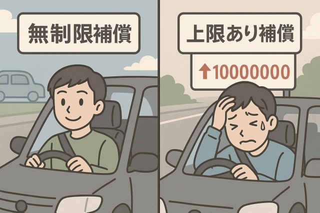 自動車保険の対人補償には、大きく分けて「無制限補償」と「上限あり補償」があります。