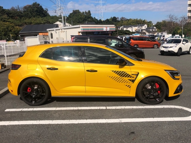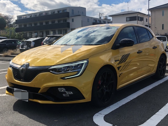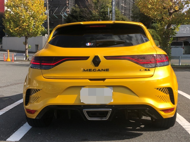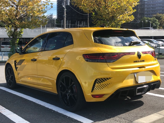 ルノー メガーヌR.S(BBM5P2)である。職場の行き帰りの通勤途中で走っているのを見かけたりしていて、「やたら乾いた良い音の排気音だな!」と感心していた。