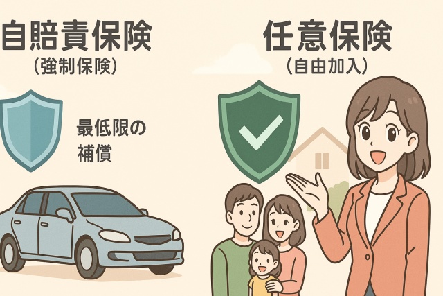 つまり、自賠責保険は最低限の義務的な備えであり、任意保険は安心を確保するための選択肢と考えると理解しやすいでしょう。