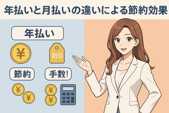 月払いは分割で支払えるため負担が軽く感じられますが、分割手数料が上乗せされるため、トータルでは高くなるケースがほとんどです。一方、年払いは一括で支払う必要があるものの、割引が適用される場合もあり、結果的に数千円から数万円の節約につながることがあります。