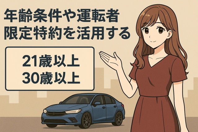 例えば「30歳以上補償」や「21歳以上補償」といった年齢条件を設定すれば、対象年齢外の事故リスクを除外でき、保険料を大幅に削減できます。また、運転者を本人や配偶者、家族に限定することで、余計な補償を省くことができます。