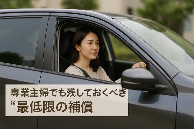 とくに専業主婦の場合、買い物・送迎などで家族を乗せて運転する機会が多いため、もしものときに備えて 最低限守るべき補償ライン を明確にしておくことが大切です。