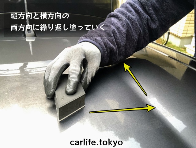 手順3:縦方向と横方向の両方向に薬剤を塗っていく。(約1分間)