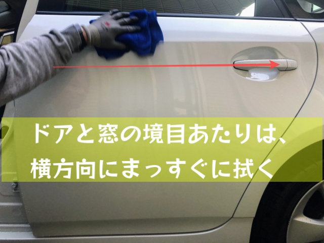 - ドアと窓の境目あたりは、横方向にまっすぐに拭き上げる