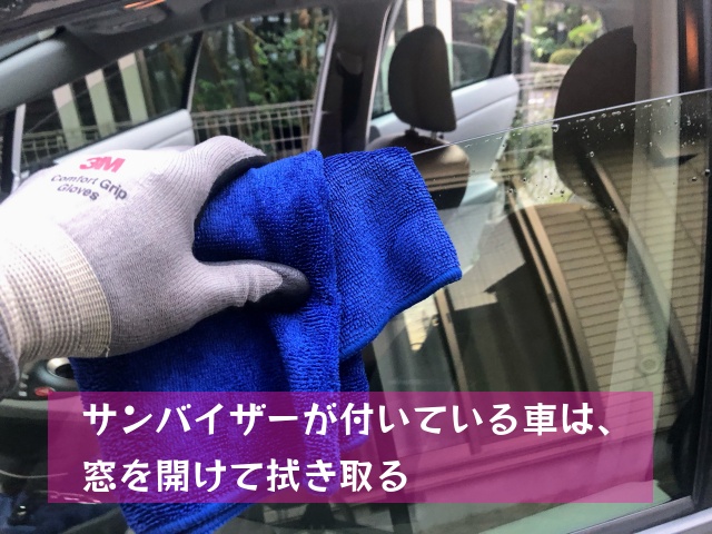 - サンバイザーが付いている車は、面倒くさがらずに窓を開けて拭き上げる