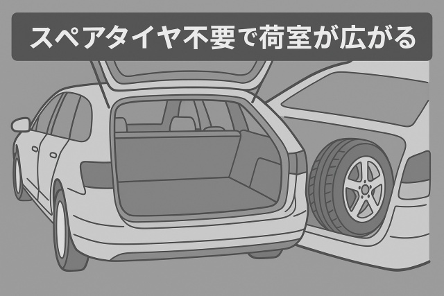 ランフラットタイヤのもう一つの大きなメリットは、スペアタイヤを積む必要がない点です。