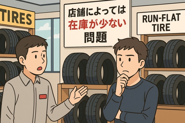 ランフラットタイヤは一般的な標準タイヤに比べて流通量が少なく、取扱い店舗によっては在庫が限られている場合があります。