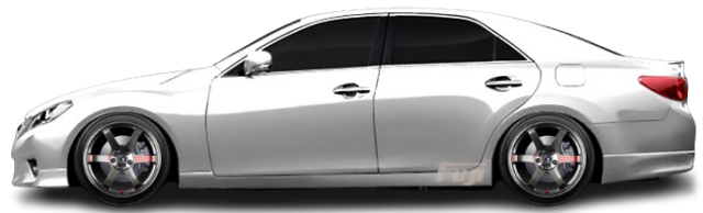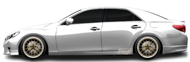 マークXの美しいサイドラインを活かすなら、車高調による程よいローダウンと、19インチへのインチアップが黄金比と言えるでしょう。