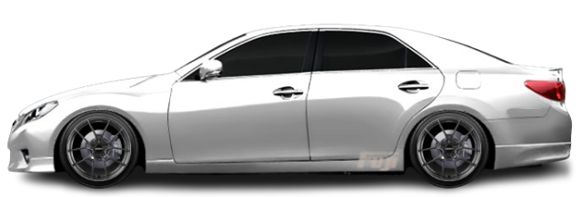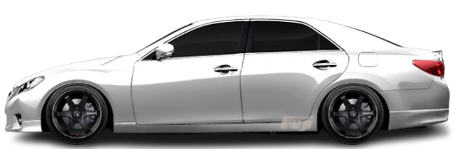 130系マークXのサイドビューを、一気に高級輸入車やハイエンドスポーツのような雰囲気へと変貌させます。複雑な造形は光の当たり方によって様々な表情を見せ、マークXの複雑なプレスラインと絶妙に呼応します。
