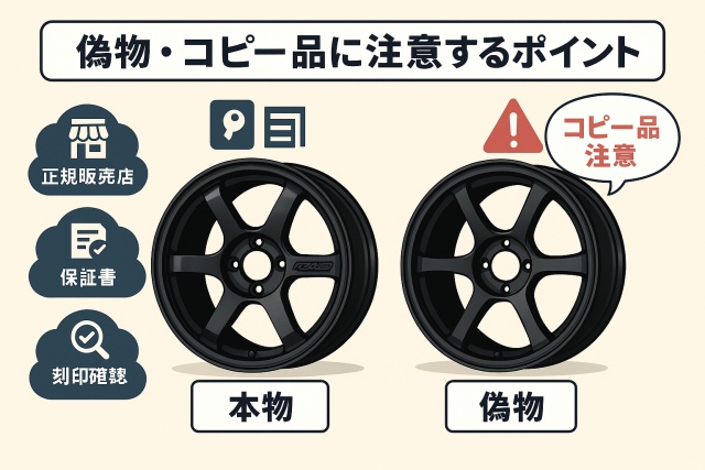 人気の高いRAYSホイールは、その知名度ゆえに偽物やコピー品が出回ることも少なくありません。