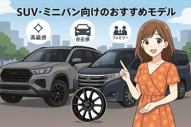 SUVやミニバンには、重い車体をしっかりと支えつつ、高級感や迫力を演出できるホイールが求められます。