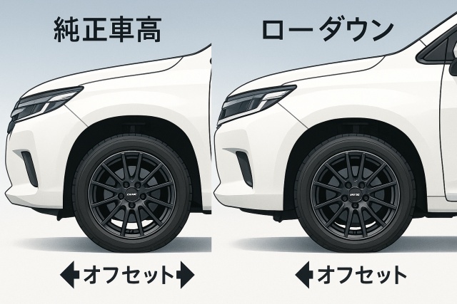 純正車高・ローダウンで適正オフセットが変わる
