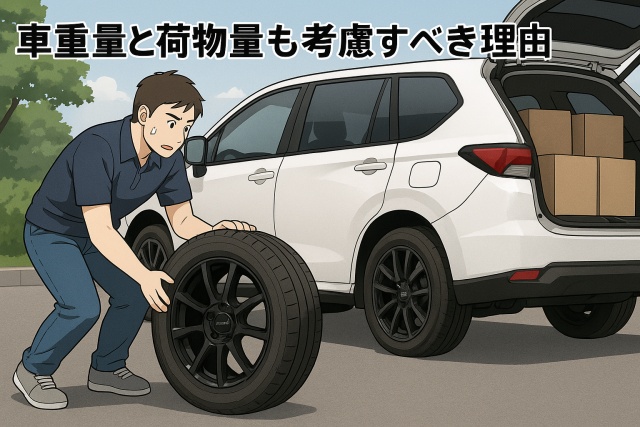 ホイールサイズを選ぶときに意外と見落とされがちなのが、車両重量と荷物量の影響です。SUV・ミニバンは車体そのものが重く、さらに家族分の荷物やアウトドア用品を積むと、想像以上に負荷が増えます。