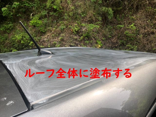 車のルーフであれば、30㎝四方ぐらいのブロックに分けてコンパウンドを塗布していきます。30㎝四方でなくても、車のルーフの大きさに合わせた大きさでもいいですし、自分が作業しやすい大きさのブロックで良いと思います。