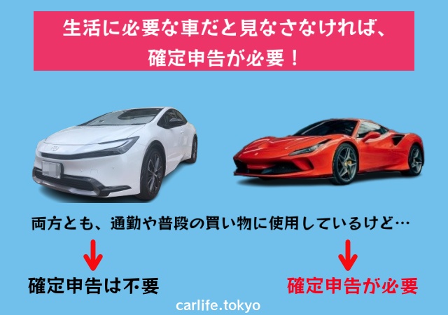 同じように、通勤や日常の買い物など、生活に使用しているのに、車の種類によっては、確定申告が不要な場合と、確定申告が必要な場合があります。