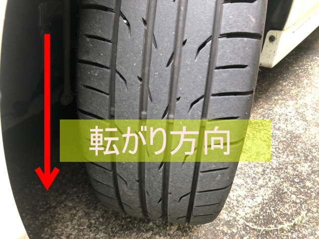 このタイヤは「方向性タイヤ」であり、タイヤローテーションの際は、前後の入れ替えのみで、左右の入れ替えはできないのが特徴です。