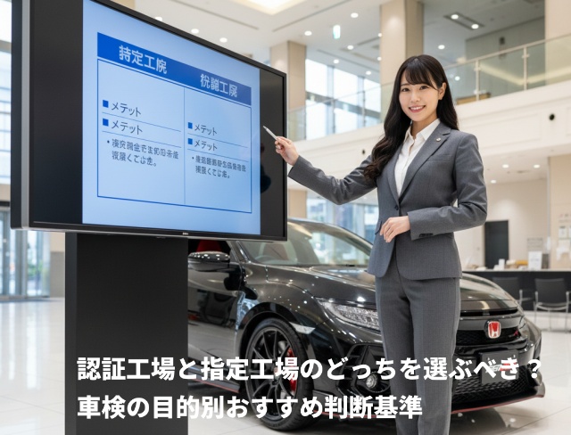 スピード重視・その場で完結させたい人 → 指定工場がおすすめ費用重視・じっくり整備相談したい人 → 認証工場が向いている