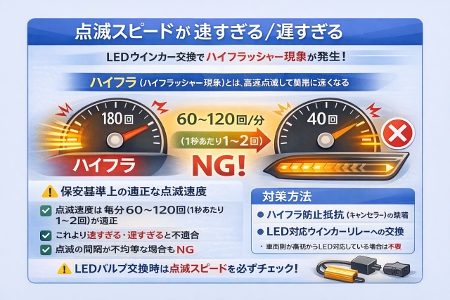 点滅スピードが速すぎる(ハイフラ)または遅すぎる