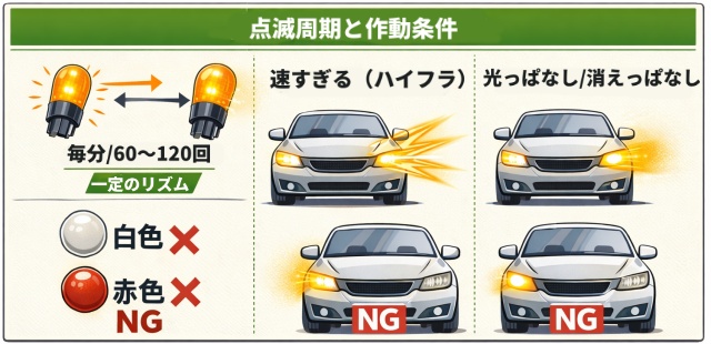 ウインカーの点滅には、以下のような点滅スピードと安定性に関する基準があります。