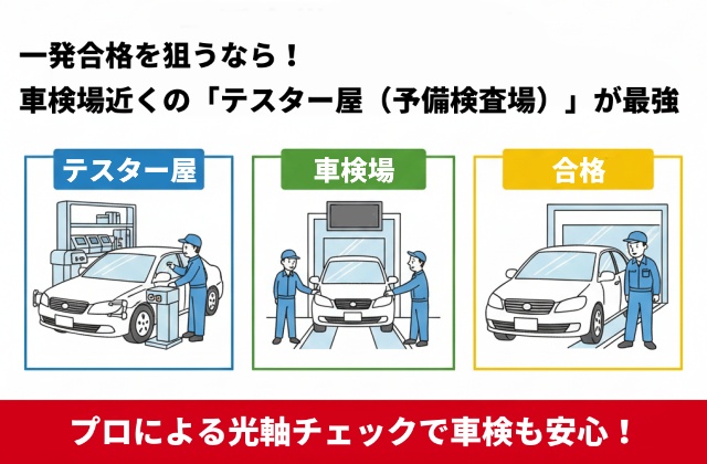 活用法: 車検を受ける直前に立ち寄るのが定番です。もし本番で不合格になっても、テスター屋に戻れば再調整してくれる「再検無料」の店舗も多く、非常に心強い存在です。
